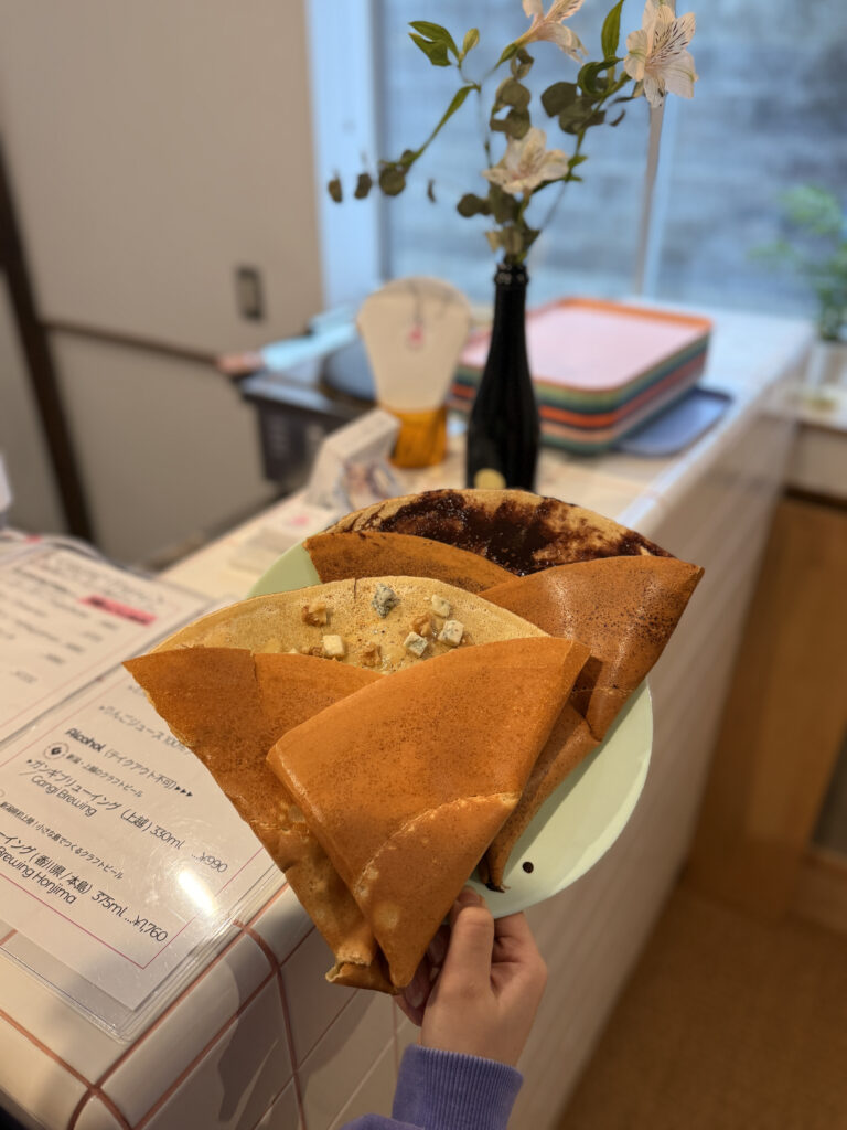 こちらでいただけるのは、上越米粉を使った焼きたてのクレープ。焼き目はパリッと香ばしく、