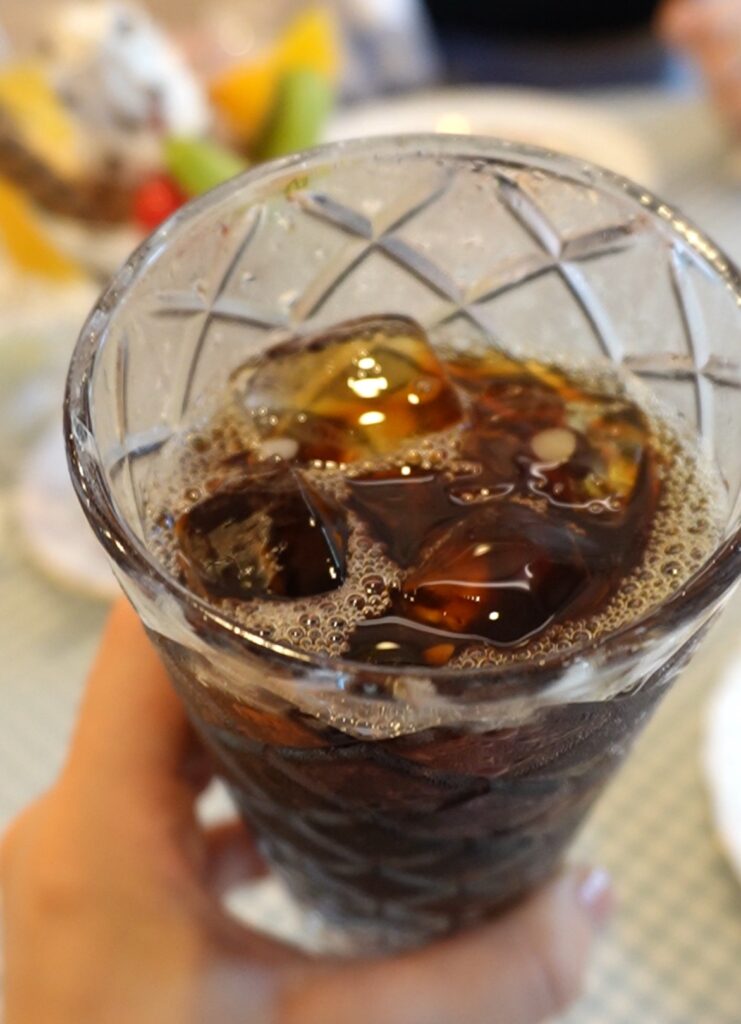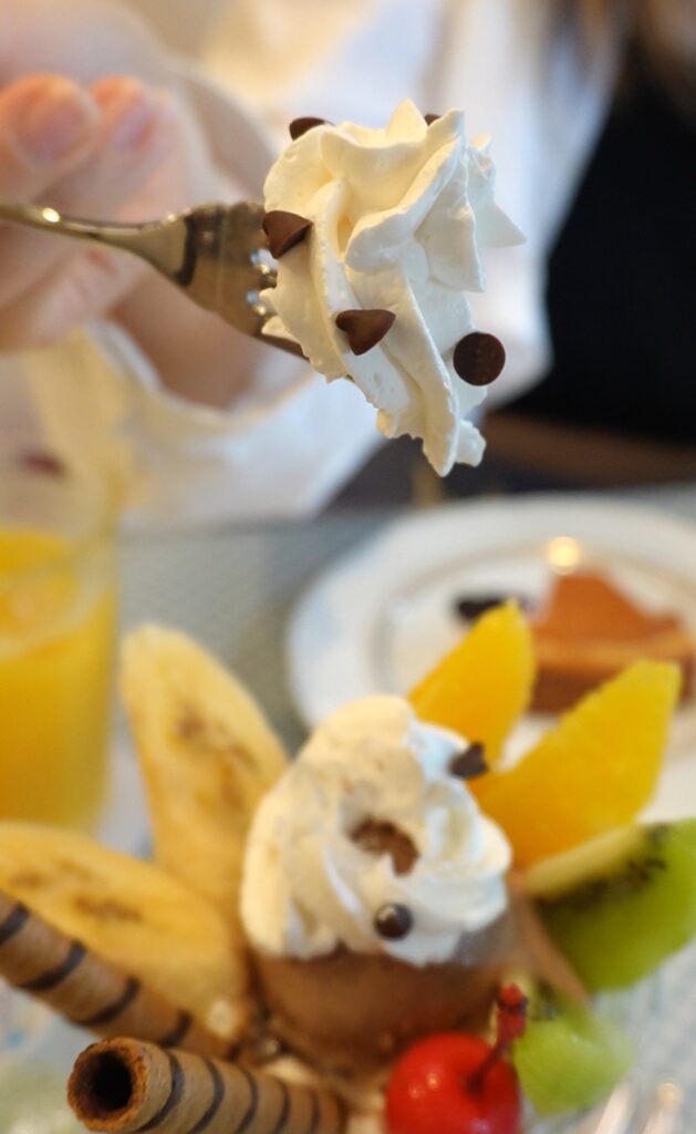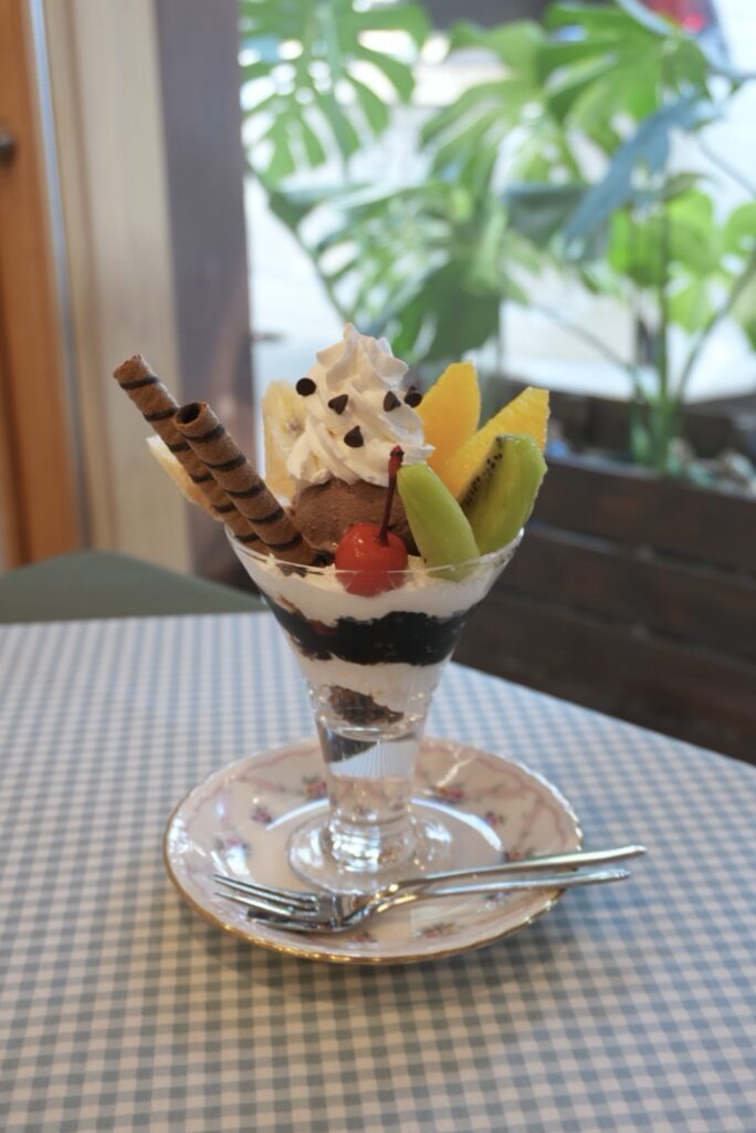 ほろ苦いコーヒーゼリーとたっぷりの生クリームが絶妙にマッチ。フルーツもひとつひとつが大きくて甘く、幸せな気持ちにさせてくれます。