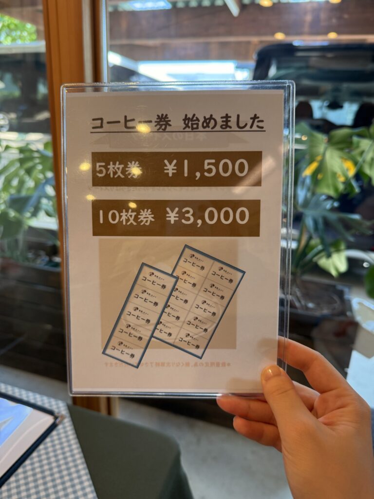 通いやすいコーヒーチケットまで完備。ホスピタリティが凄すぎるのでこれはもう常連になること間違いなし(笑)
