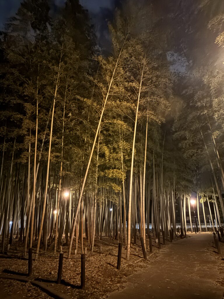 静かで落ち着いた雰囲気。寺院の歩道もライトアップされていて趣がありました。